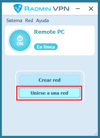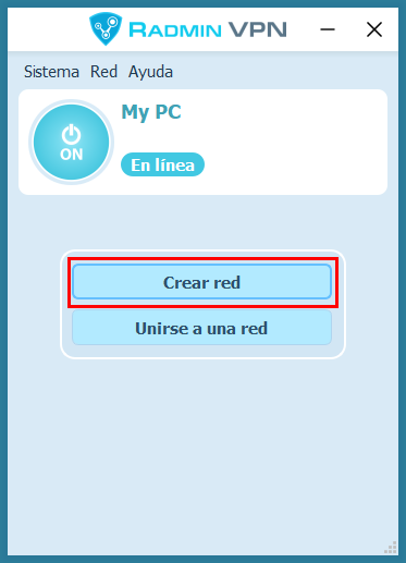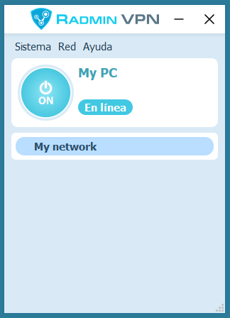 Haz clic en el botón redondo de Radmin VPN para iniciar el servicio.