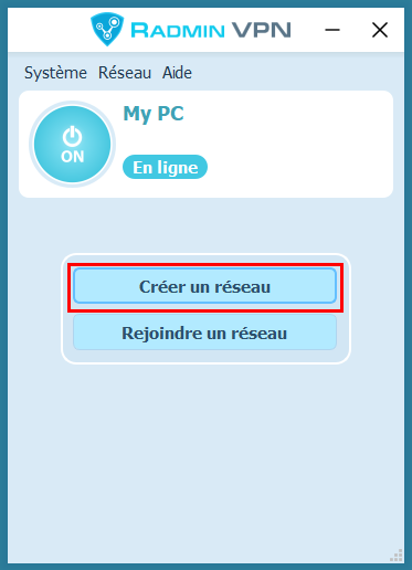 Cliquez sur le bouton rond dans Radmin VPN pour démarrer le service.