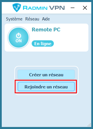 Le nouveau réseau apparaitra dans la fenêtre principale de Radmin VPN.