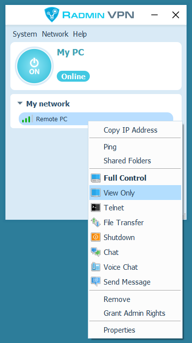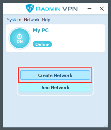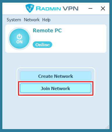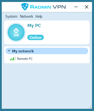 The new network will appear in Radmin VPN Main window.