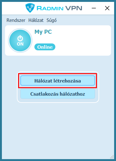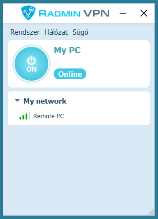 Az új hálózat megjelenik az Radmin VPN főablakában.