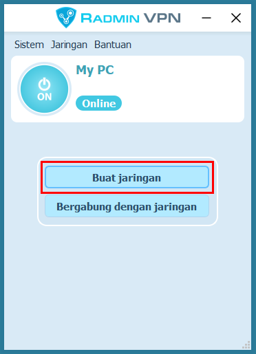 Klik tombol bulat pada Radmin VPN untuk memulai layanan.