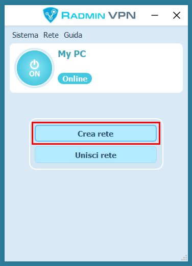 Fai clic sul pulsante rotondo in Radmin VPN per avviare il servizio.