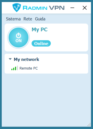 La nuova rete apparirà nella finestra principale di Radmin VPN.