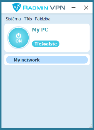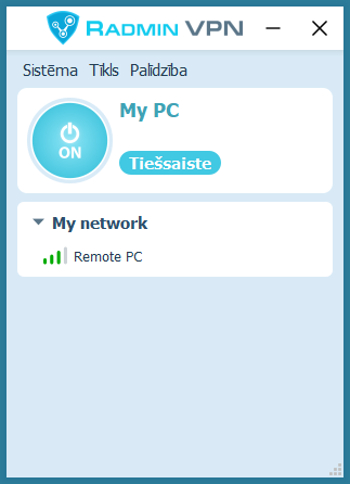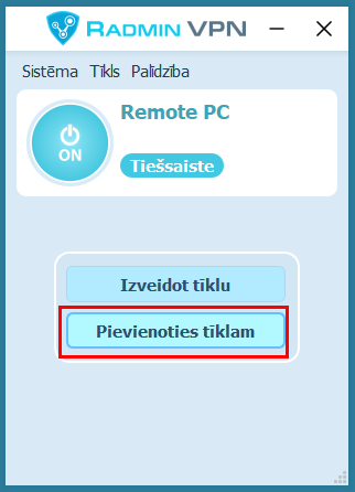 Lai pakalpojumu iedarbinātu, programmā Radmin VPN ir jānoklikšķina uz apaļās pogas.