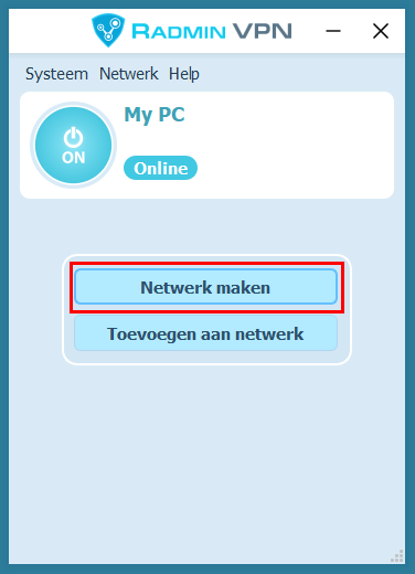 Klik op de ronde knop in Radmin VPN om de service te starten.