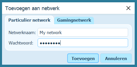 Voer in het dialoogvenster de netwerknaam en het wachtwoord in.