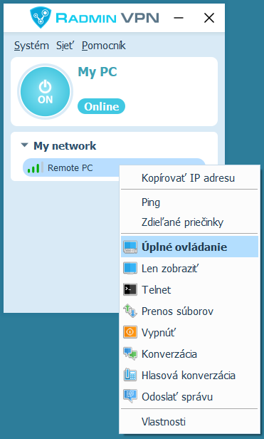 Prepojte lokálny počítač so vzdialeným pomocou programu Radmin VPN.