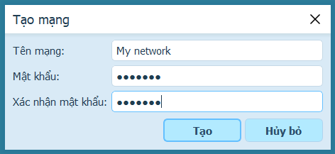 Mạng đã tạo lúc trước và các nút của mạng sẽ được hiển thị trong cửa sổ chính của Radmin VPN.