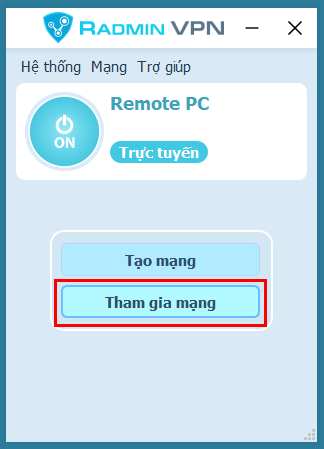 Chạy phần mềm và nhấn nút "Tham gia mạng".